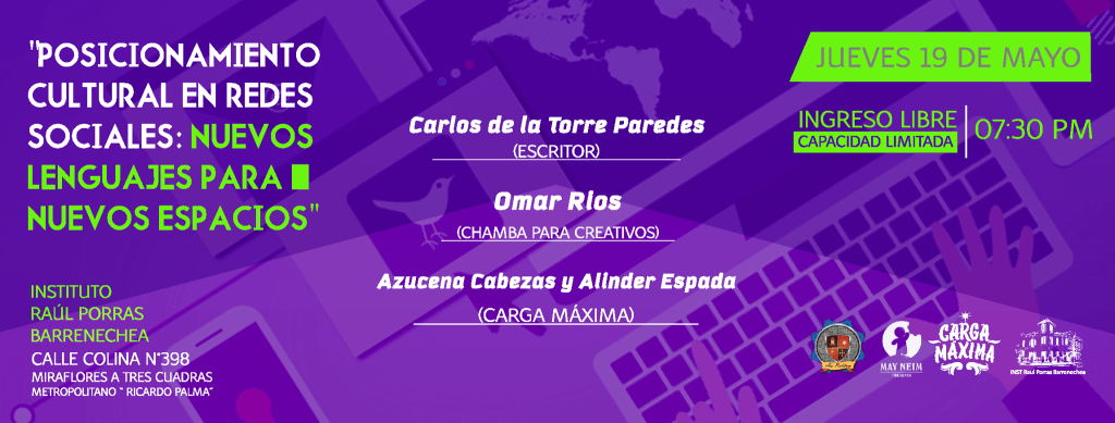 La cita es este jueves 19 de mayo, el Instituto Raúl Porras Barrenechea – Calle Colina Calle 398, Miraflores, Lima -, a tres cuadras de la estación del Metropolitano “Ricardo Palma”.