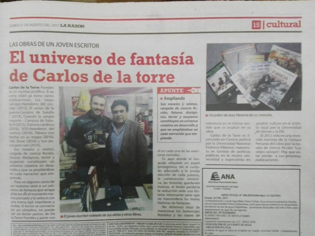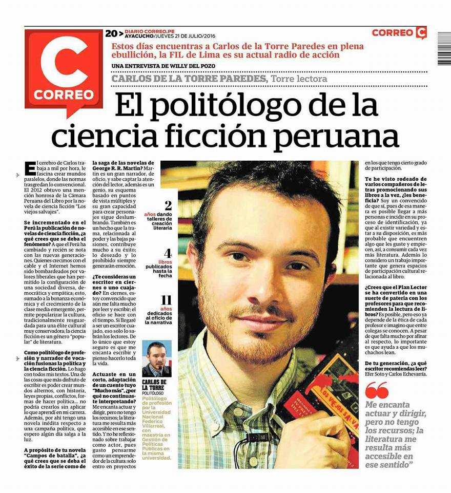 Me licencié en Ciencia Política, pero la cultura y la escritura creativa siempre fueron mi pasión. El 2012 obtuve la segunda mención honrosa en el IV Premio Cámara Peruana del Libro de Novela Breve por mi novela Los viejos salvajes – Herederos del cosmos, desde entonces he publicado varios libros.